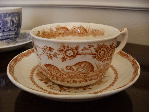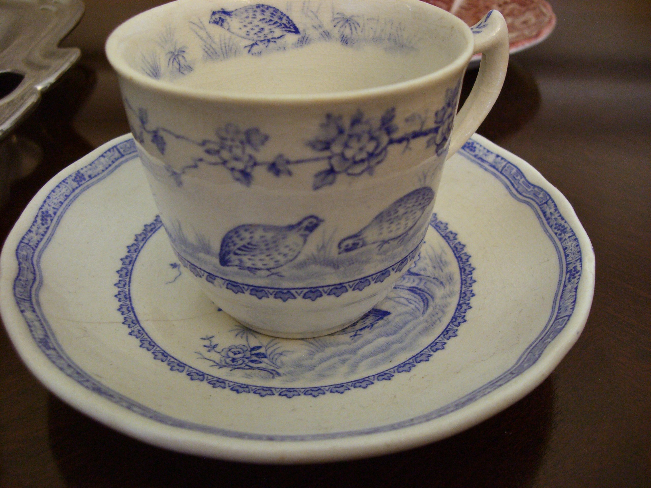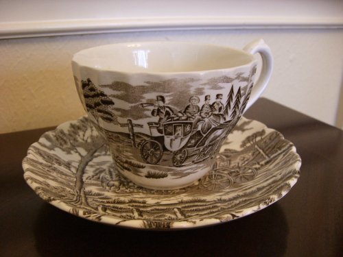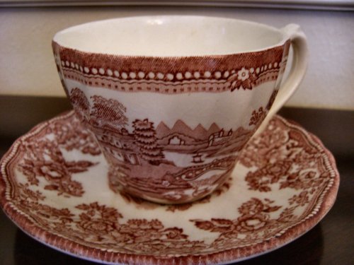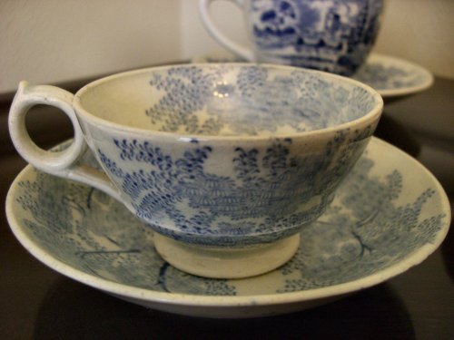 I love browsing through antique shops. I get it from my mother. We’ve been known to spend hours or even days poking through antique shops when she comes to visit. One of the things I’m most drawn to in any antique shop is transferware dishes. I specifically love cups and saucers.