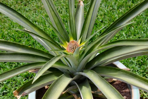• I wasn’t sure how they grow, either, but I had heard that you could cut the top off a pineapple and plant it so we gave it a try. We just had no idea it would take this long to produce. Now I’m constantly on the web trying to see what’s supposed to happen next, if there’s something I should be doing, how often should I water, etc. Now that he/she is here, I don’t want to screw this up!