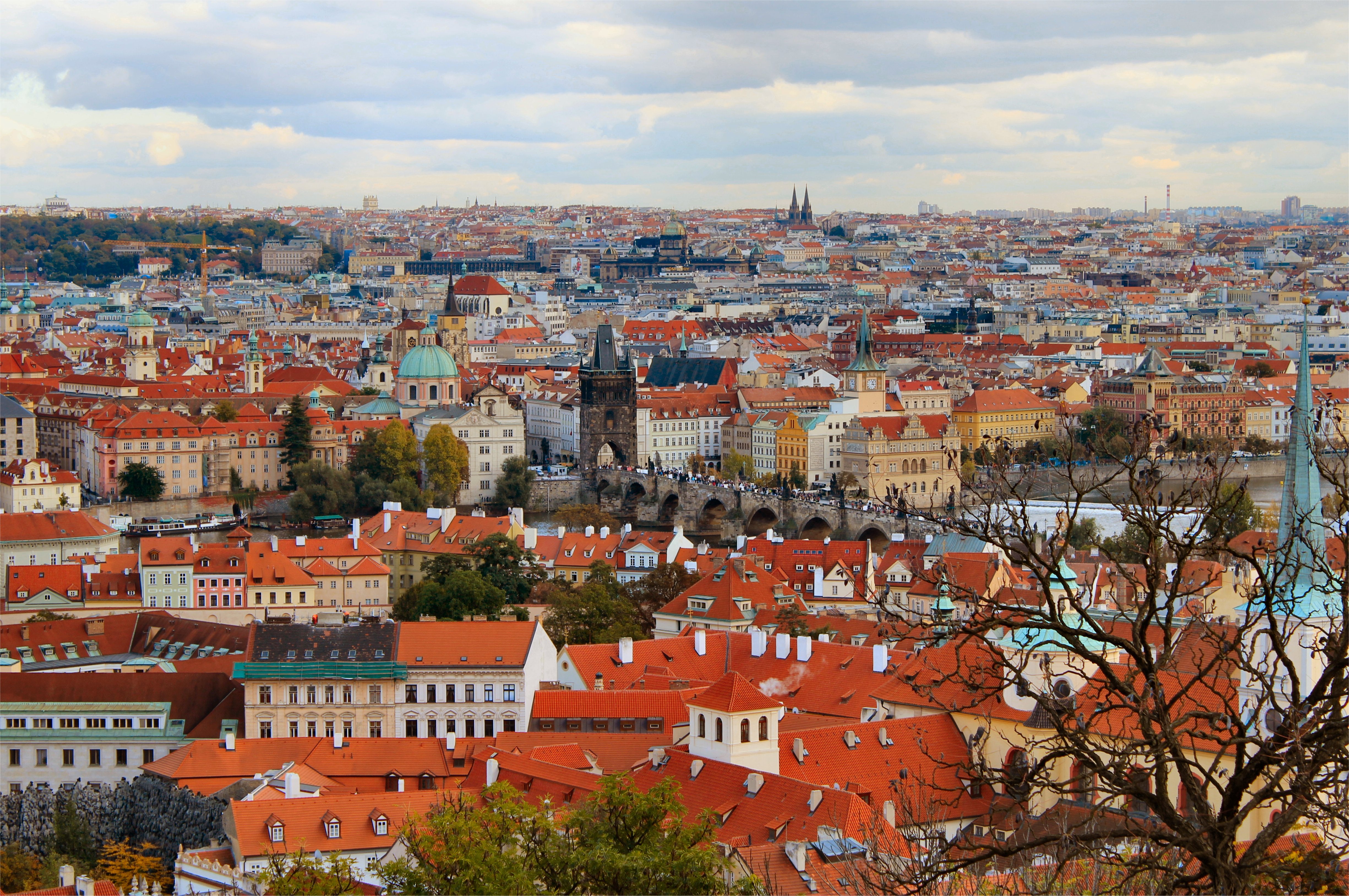 Prague as seen from Prague Castle; Charles Bridge at center of photo