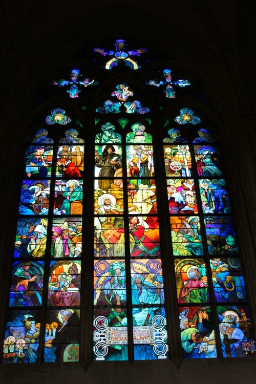 Alfons Mucha's stunning stained glass window in St. Vitus Cathedral