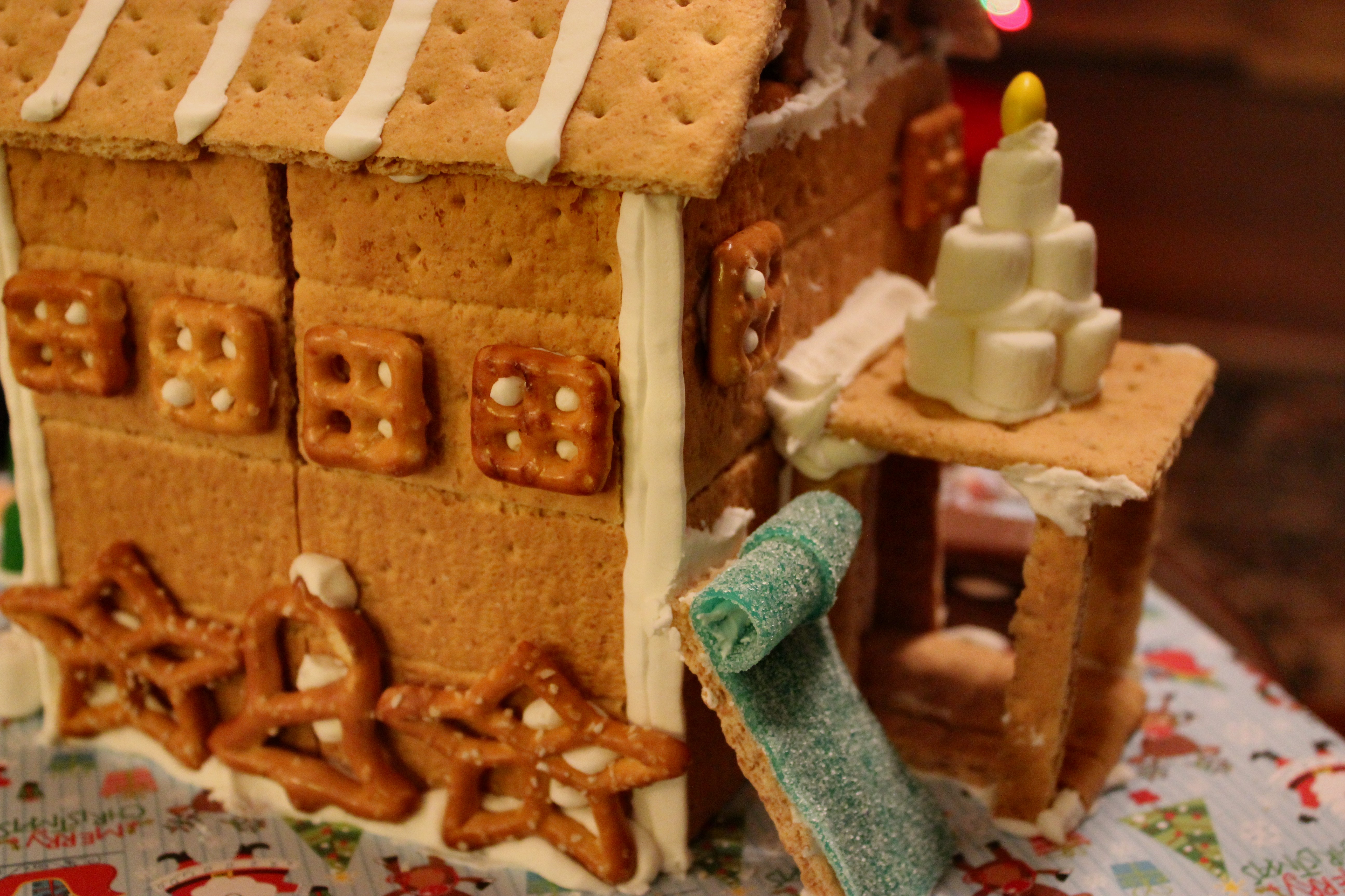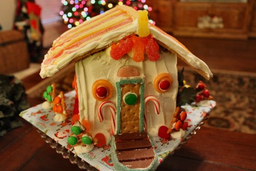 This weekend, My Baby and I decided to make gingerbread houses. Our intention was to make them with the grandkids, but Lilly Bug fell asleep and Jonah Bear got lost in a pirate movie and their mother and I ended up in a friendly gingerbread competition. Royal frosting waits for no man.