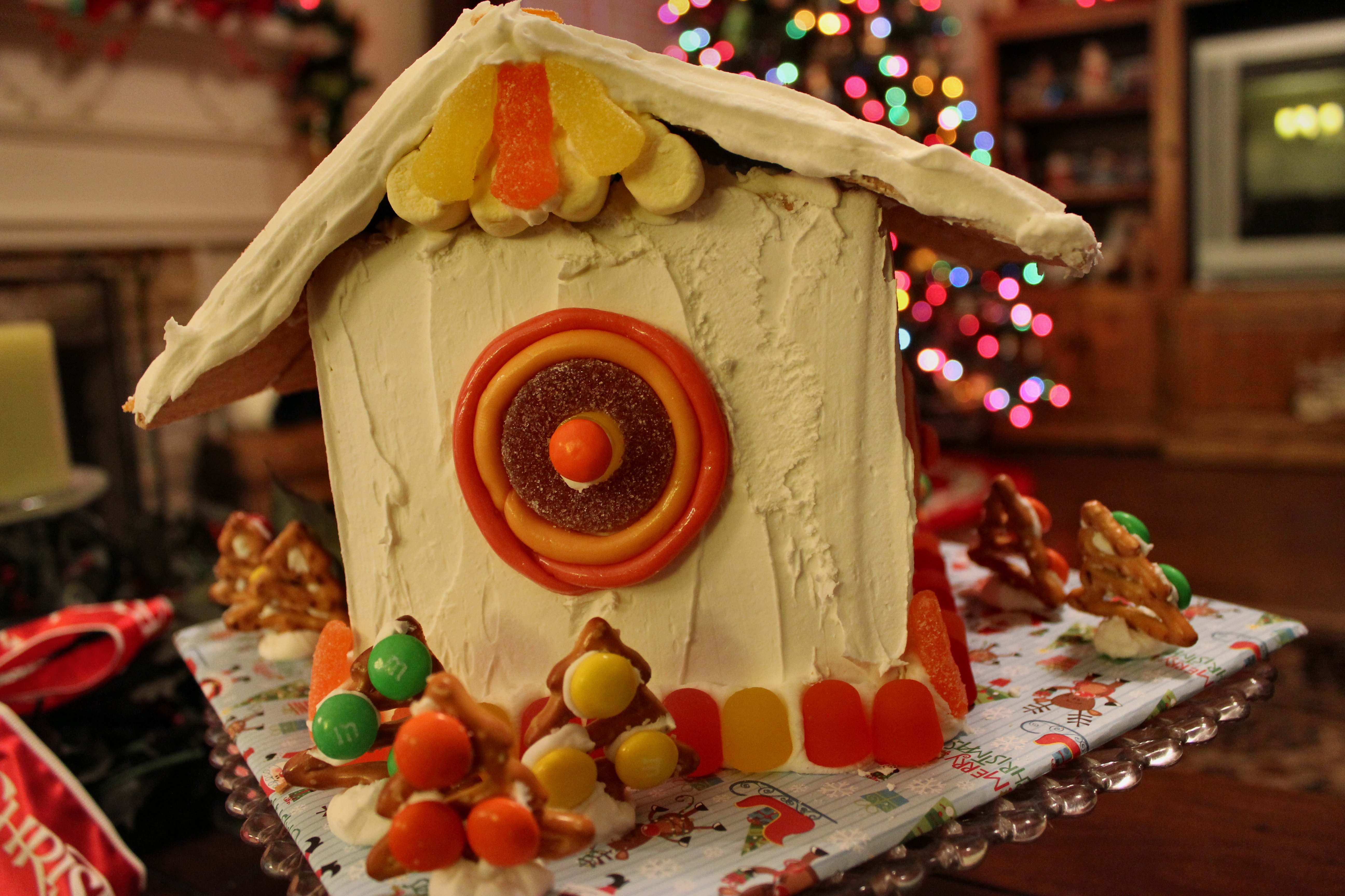I {of course} thought mine was the cutest. She {naturally} thought hers was the best. So here’s where we’re at. We’ve agreed to post photos of our gingerbread houses and let you be the judge. Literally. Take a look and leave a comment below. We’ll leave the voting open until Monday at midnight central US time, and we’ll let the vanilla coating chips fall where they may. The winner buys the loser a latte at Starbucks.