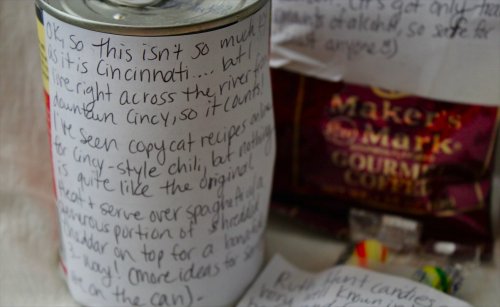 • I’m having all kinds of fun packaging boxes and opening goodies myself! I’m saving that can of chili for a true 3-way experience. And by that, I mean CHILI 3-WAY – the Cincinnati way – with spaghetti noodles, chopped onions & cheese. And now we wait to see how many spam hits I get for using the term “3-way” on my blog.