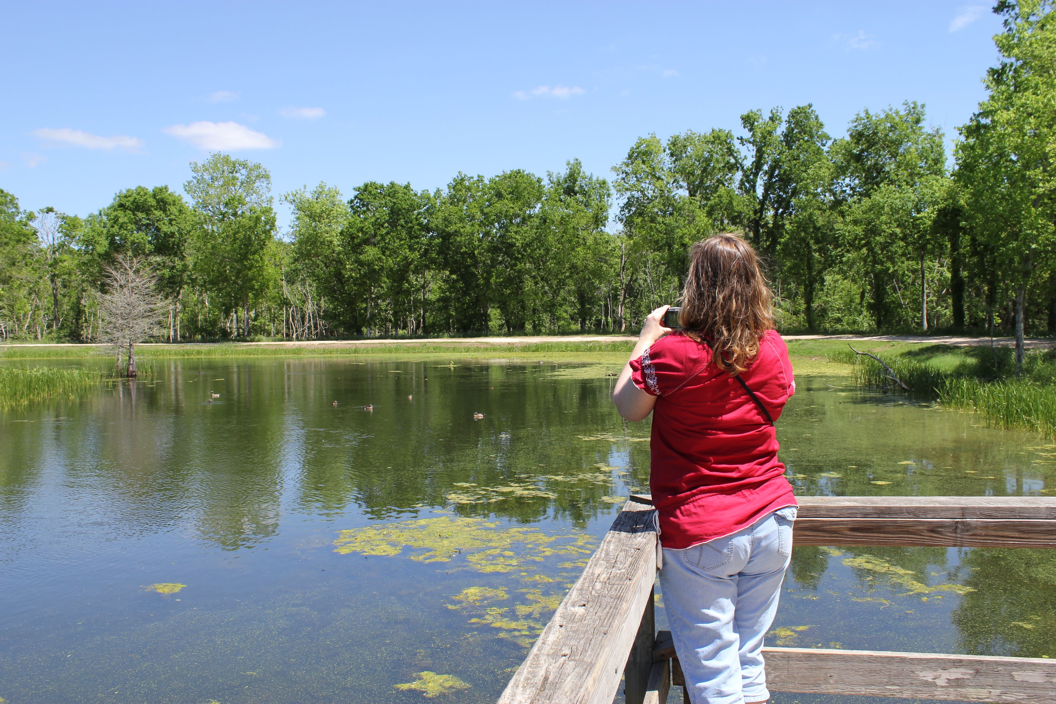 When lunch was over, we packed up the picnic and game board and took a stroll around the lake in search of alligators. Welcome to south Texas, ladies!