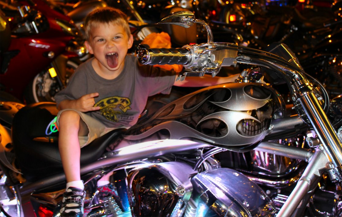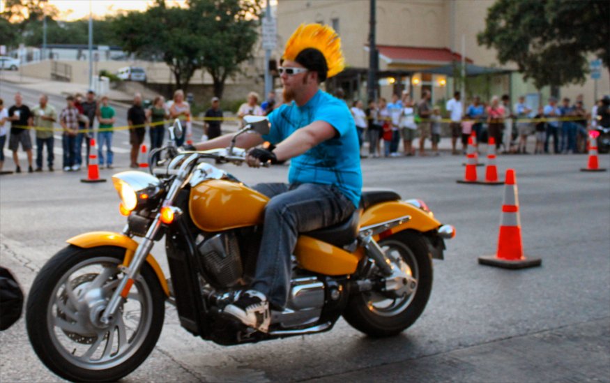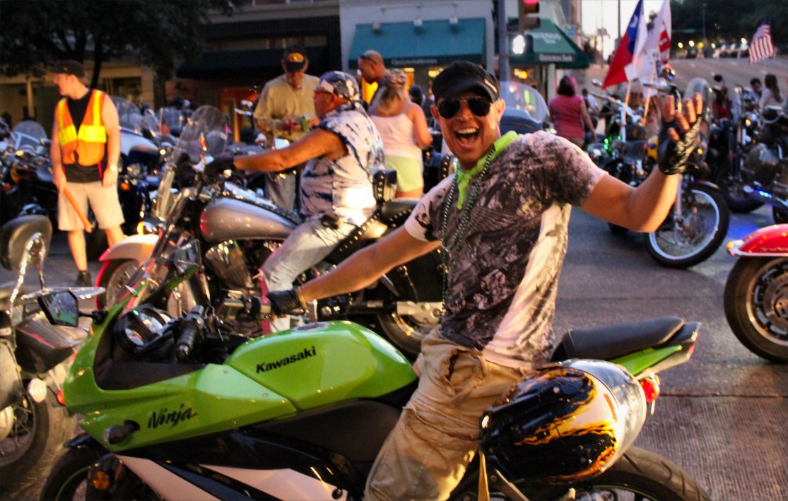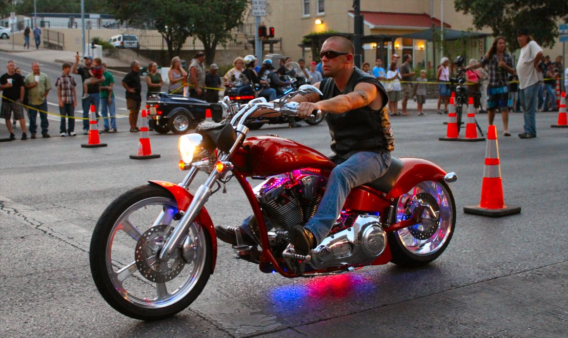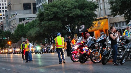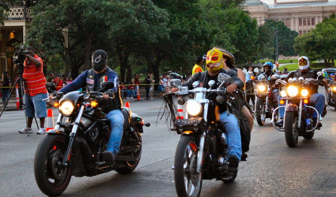 Each year, on Friday evening, participants in the motorcycle rally ride from the Austin fairgrounds into downtown in a bike parade that stretches more than 10 miles. MILES, people. And each year, My Baby and I take the grandkids downtown to watch the parade so they can see their Papi ride in. They get the biggest kick out of seeing him in the parade. It’s his rock star moment.