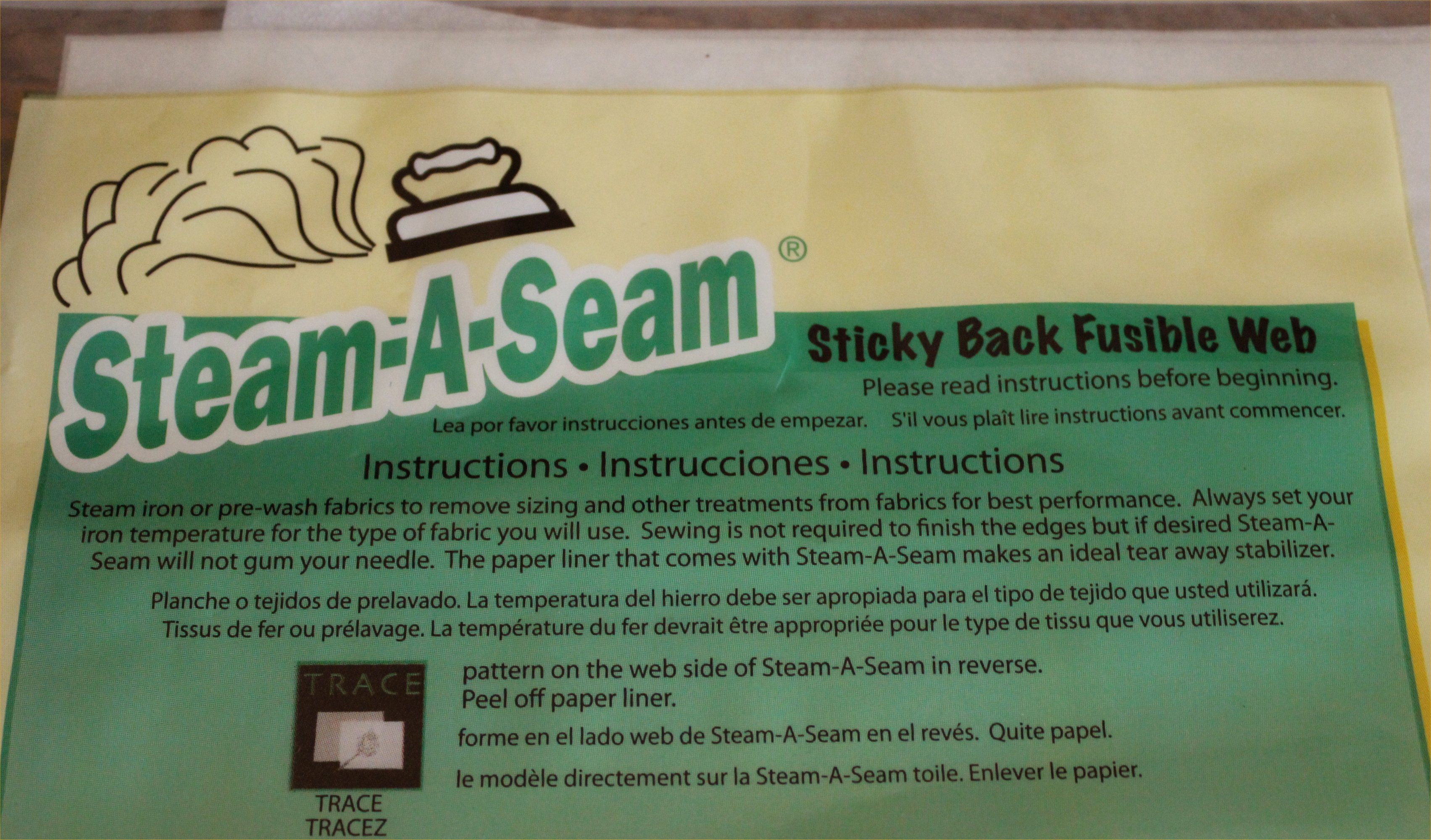 A quick note about 2-sided fusible web: if you’re unsure which type to buy, I’m including this photo of the package I purchased. It is 2-sided fusible web with a paper backing on one side, which makes it much easier to iron on. This package came in 9″ x 11″ sheets, which I cut in half. I used two 4 1/2″ x 11″ strips. Fabric and craft stores sell iron-on fusible web in many different forms and sizes. All you really need is one strip that is 4 1/2″ wide by 22″ long.