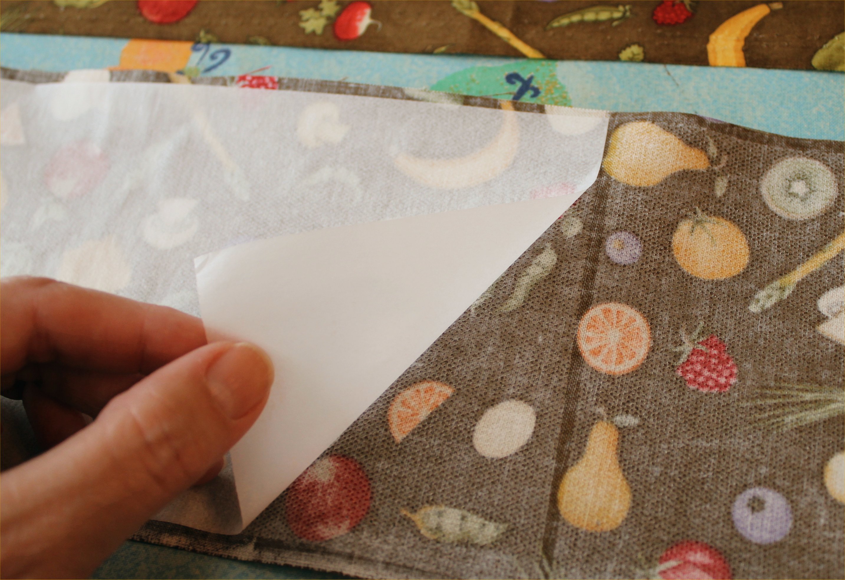 Press the fusible web to fuse it to the first strip of fabric. Once it has cooled, remove the paper backing.