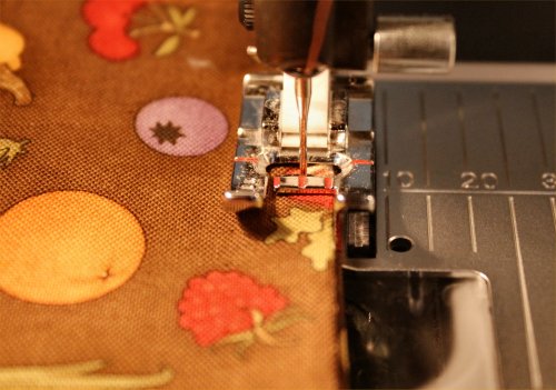 Moving back to your sewing machine, stitch the entire length of your pinned seam using a 1/8″ seam allowance.