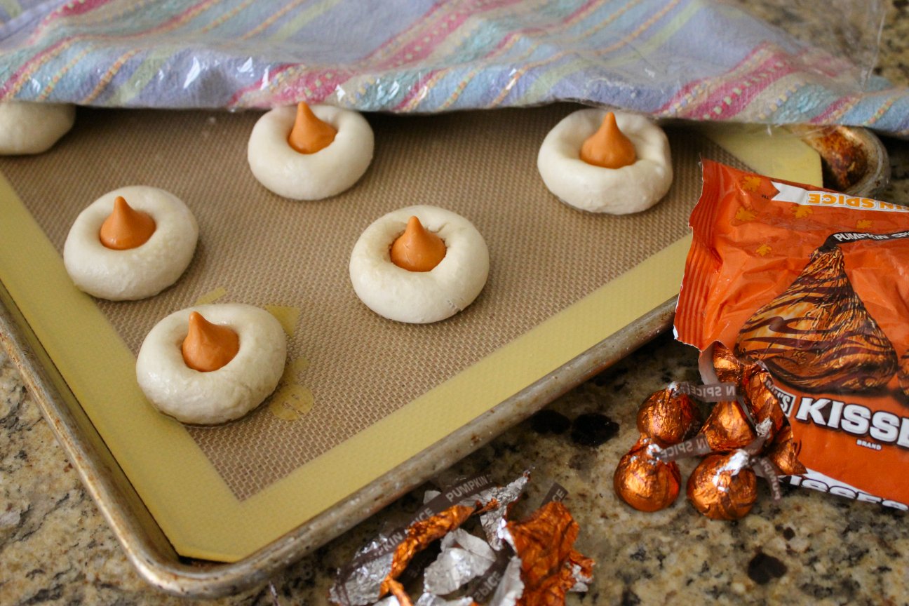 That, my friends, is a perfect scoop. To get it, I simply drag the scoop through the dough then scrape it up the side of the bowl as I remove it. See how the dough presses perfectly into the scoop? That’s when you know it’s the right consistency. Scoop onto lined baking sheets, 2″ apart so you can press them.