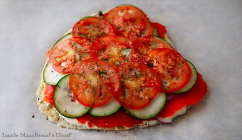 Follow that with a layer of tomatoes and a light dusting of salt & pepper.