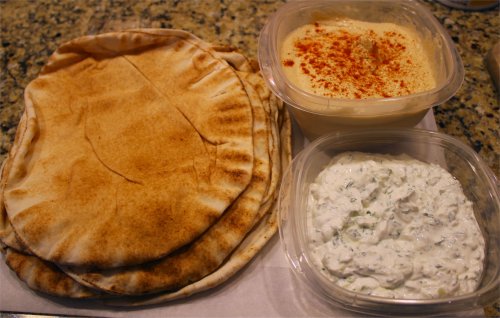 Pita bread, hummus and tzatziki - the shawarma trinity