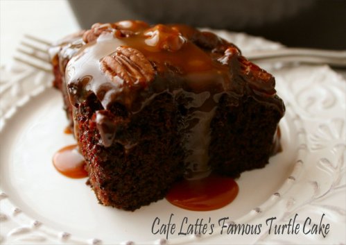 And while we know who’s sending each box, we never quite know what to expect. For that reason, each exchange is like a little bit of Christmas all year round. This month my box came from Kat of Tenaciously Yours in the Minneapolis/St. Paul area of Minnesota. Check out all the fabulousness, including every non-perishable thing needed to make Cafe Latte’s Famous Turtle Cake. You heard me – gooey, fudgy caramel-coated Turtle Cake. {sigh; where are my fat pants?}