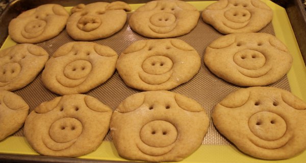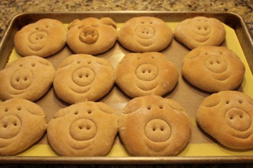 Allow your precious piggy buns to rise an additional 15-20 minutes while your oven pre-heats to 375 degrees. You want your piggies to be portly… plump… chubby… uh, big-boned… healthy? You get the picture.