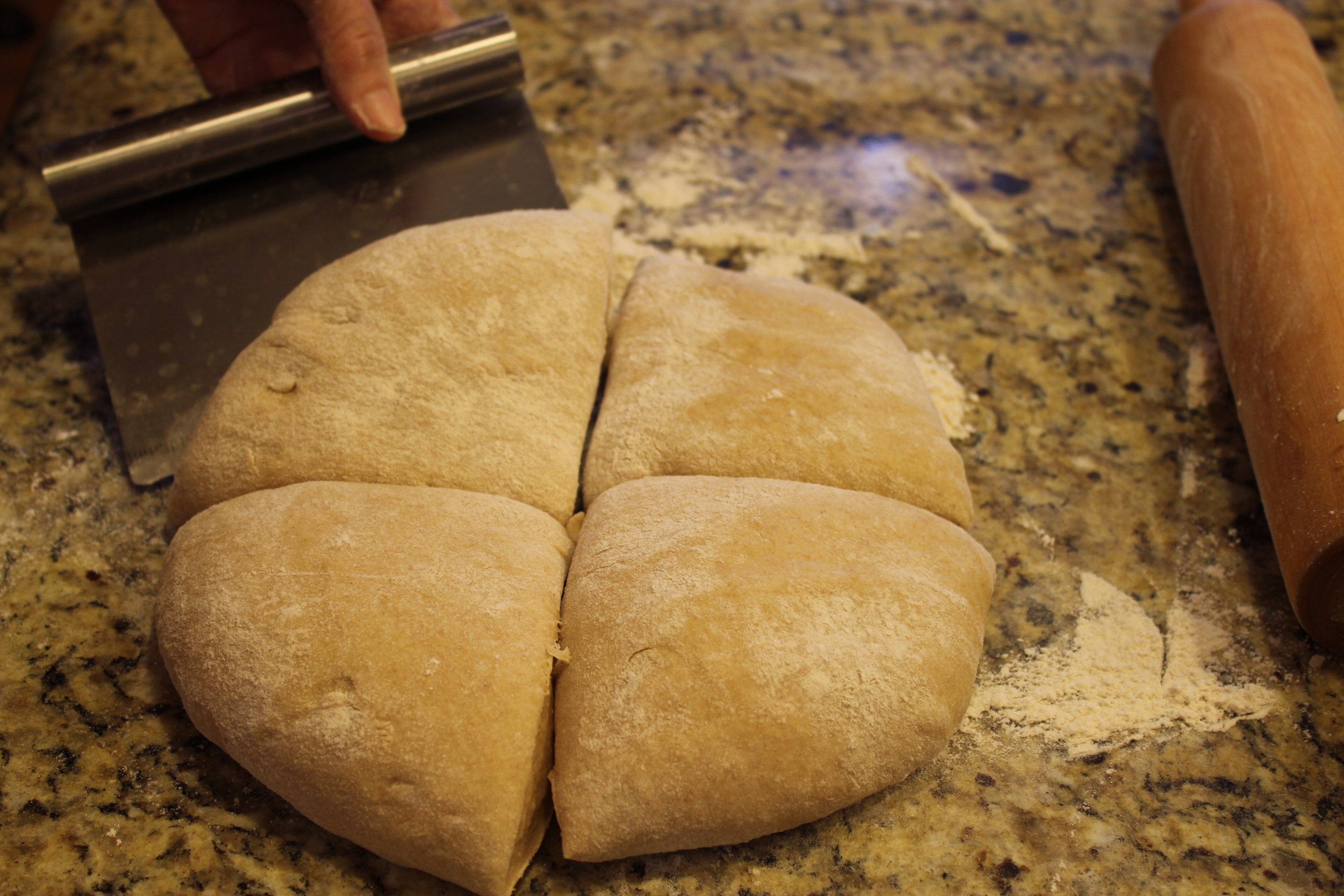 Tip: we used a bench scraper to divide it in half, then each half into half, etc. (like those old Faberge shampoo commercials, if you’re old enough to remember them – you’ll tell 2 friends, and they’ll tell 2 friends…).