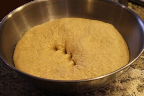 Spray a large mixing bowl with cooking spray (or butter/oil it lightly) and place your dough ball in the center. Lightly spray or oil the surface of your dough ball. Cover with plastic wrap and a clean, dry towel and set aside to let it rise until doubled in size (approximately one hour).