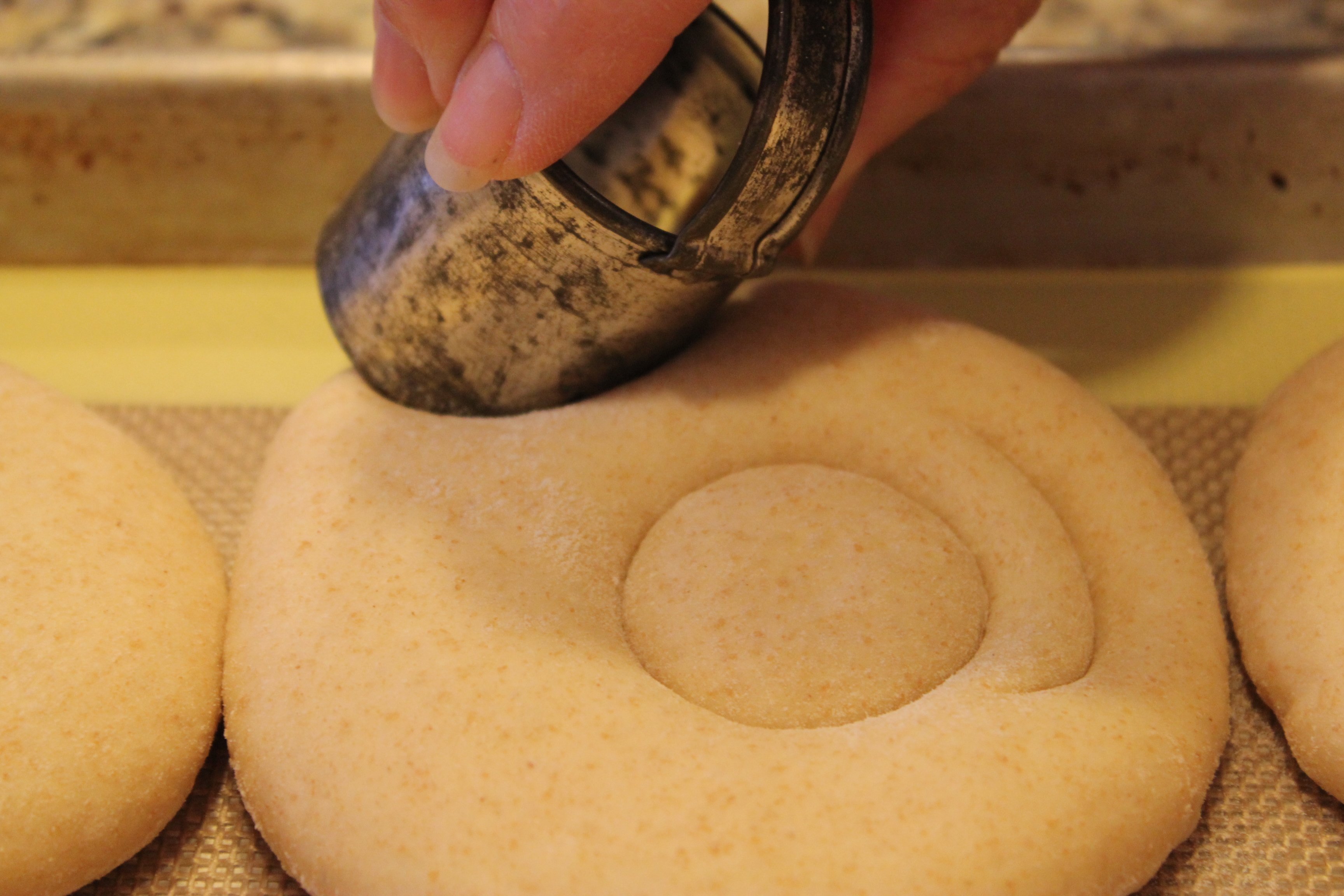 Step One: form the nose by pressing the cutter just below the imaginary center line in a full circle halfway into the dough (don’t cut all the way through!).