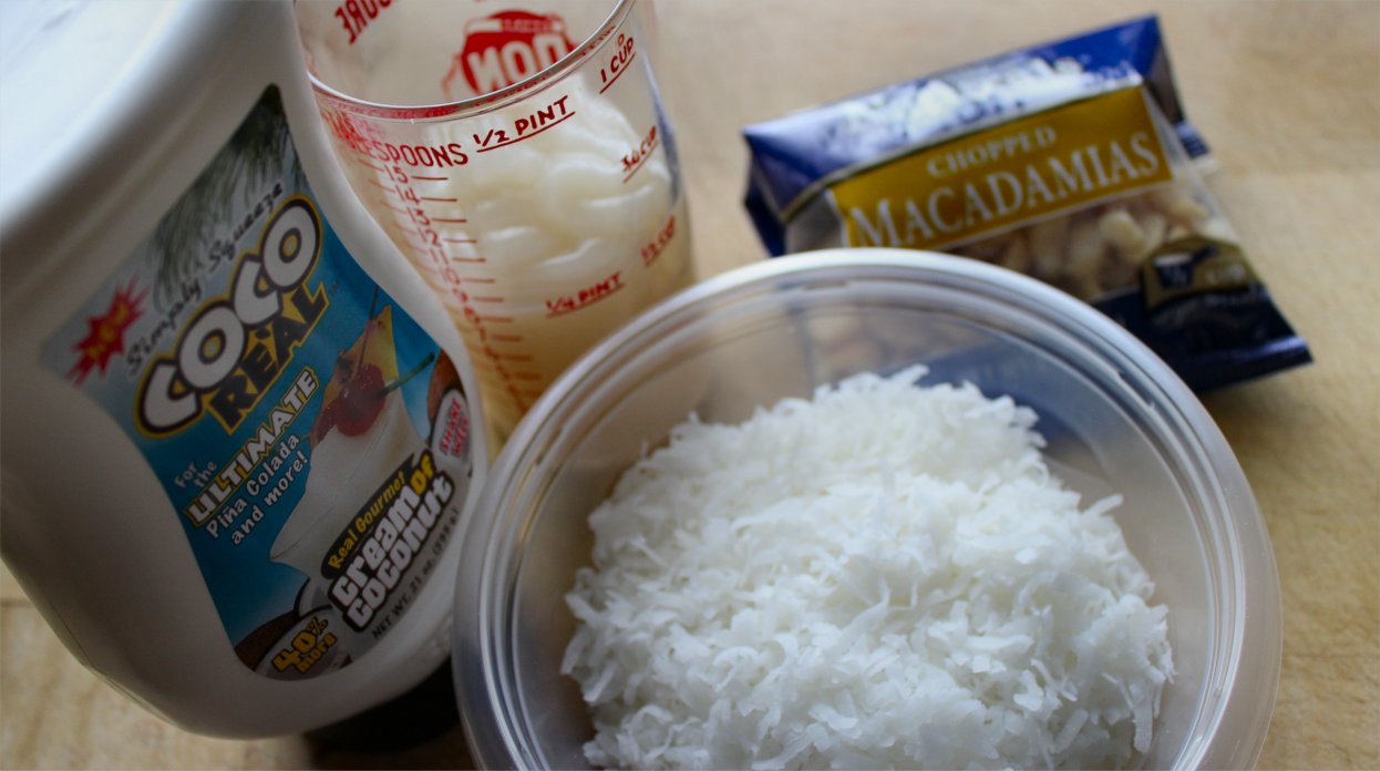 3. Macadamia nuts, shredded coconut and Cream of Coconut