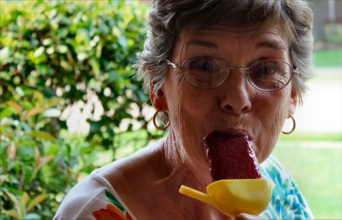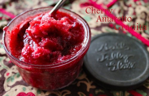 Cherry Amaretto Granitas & Spritzers – this one worked. Mom sampled it as a granita and a poptail, but I think my favorite version of it was the spritzer with ginger ale. You can see that one by clicking HERE.